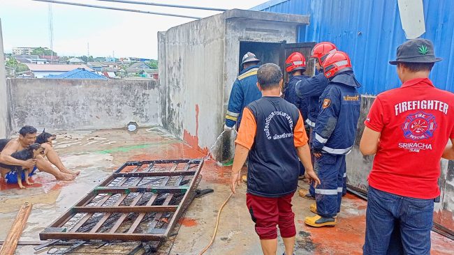 เวลา 12.00 น. วันที่ 23 มิ.ย. 65 ร้อยเวรสอบสวน สภ.ศรีราชา รับแจ้งมีเหตุเพลิงไหม้บ้านเรือน บริเวณซอยวัดวังหิน 1 บ้านเลขที่ 46/62 หมู่ 1 ตำบลสุรศักดิ์ อำเภอศรีราชา จังหวัดชลบุรี หลังรับแจ้งจึงประสานงานรถดับเพลิงเทศบาลเมืองศรีราชา เทศบาลนครเจ้าพระยาสุรศักดิ์ จำนวน 2 คัน พร้อมหน่วยกู้ภัยสว่างประทีปศรีราชา เข้าระงับเหตุ