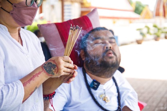 เมื่อวันนี้ 23 มิถุนายน 2565 ที่ บ้านมหาเวทย์ ปส ได้จัดให้มีงาน อาบน้ำมนต์ชุบราศี ที่วัดปรางค์หลวง จังหวัดนนทบุรี ท่ามกลางลูกศิษย์ที่ศรัทธาในตัว อาจารย์ประสงค์ (หมอผีตาทิพย์) เข้าร่วมงานเป็นจำนวนมาก
