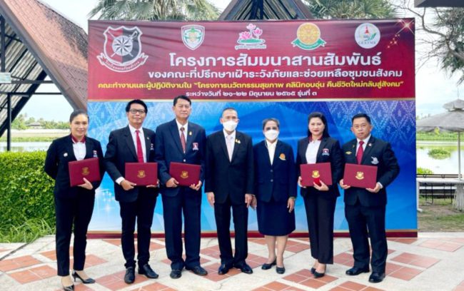 โครงการสัมมนาสานสัมพันธ์ คณะที่ปรึกษาเฝ้าระวังภัยและช่วยเหลือชุมชนสังคม “นวัตกรรมสุขภาพ คลินิกอบอุ่น คืนชีวิตใหม่กลับสู่สังคม” ก็เพื่อช่วยเหลือเยาวชน-ประชาชนผู้หลงผิดที่ติดยาเสพติด ทั้งนี้ คณะที่ปรึกษา คณะทำงานต้องผ่านการอบรมเสริมทักษะความรู้ในด้านต่างๆ การติดอาวุธทางปัญญา มีการให้ความรู้เรื่องพิษภัยของยาเสพติด(ยาบ้า)แผนการป้องกันปราบปรามและการแจ้งเบาะแส ,การให้ความรู้เรื่องสมุนไพรในการบำบัดรักษาผู้ติดยาเสพติด ,การรู้เท่าทันภัยจากแก๊งคอลเซ็นเตอร์หลอกโอนเงิน โดยวิทยากรผู้ทรงคุณวุฒิ