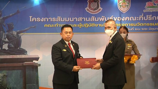 เมื่อวันที่ 21 มิ.ย.65 เวลา 09.00 น. ที่อาคารวงษ์สุวรรณ โรงเรียนนายร้อยตำรวจ อ.สามพราน จ.นครปฐม พล.ต.อ.เฉลิมเกียรติ ศรีวรขาน อดีตรอง ผบ.ตร.ที่ปรึกษาสำนักงานคณะกรรมการป้องกันและปราบปรามยาเสพติด (ป.ป.ส.) พร้อมด้วย รศ.พล.ต.ท.ดร.ธัชชัย ปิตะนีละบุตร ผู้บัญชาการโรงเรียนนายร้อยตำรวจ ,รศ.นพ.ดิลก ภิยโยทัย คณบดีคณะแพทยศาสตร์ ม.ธรรมศาสตร์ ,รศ.ดร.ภญ.อรุณพร อิฐรัตน ผอ.ศูนย์ความเป็นเลิศทางการวิจัยแพทย์แผนไทย ม.ธรรมศาสตร์ ,ผู้แทน สนง. ป.ป.ส. ,ดร.พีรวัฒน์ สุรเศรษฐ ประธาน กต.ตร.กทม.(ภาคประชาชน) คณะ กต.ตร.สภ.เพ จ.ระยอง ,จิตอาสา และแขกผู้มีเกียรติ ร่วมพิธีเปิดโครงการสัมมนาสานสัมพันธ์ คณะที่ปรึกษาเฝ้าระวังภัยและช่วยเหลือชุมชนสังคม คณะทำงานและผู้ปฏิบัติงานใน “โครงการนวัตกรรมสุขภาพ คลินิกอบอุ่น คืนชีวิตใหม่กลับสู่สังคม” รุ่นที่ 3 มีผู้เข้าร่วมโครงการจำนวน 150 คน