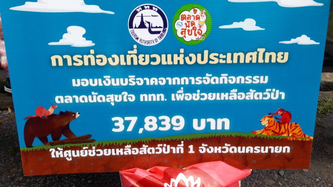 จ.นครนายก : ททท. มอบเงินบริจาค เเก่ศูนย์ช่วยเหลือสัตว์ป่าที่ 1 จังหวัดนครนายก เพื่อนำเงินไปจัดซื้อ อาหาร เเละยา ให้แก่สัตว์ป่าที่อยู่ภายใต้การดูเเลกว่า 1,000 กว่าชีวิต