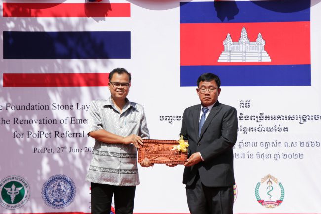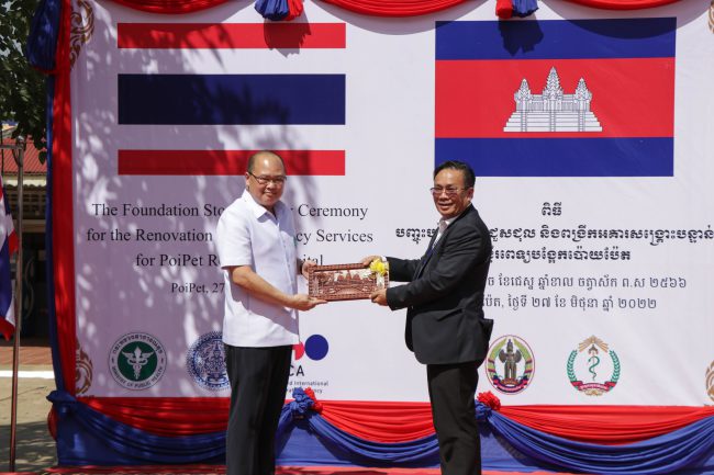 พิธีวางศิลาฤกษ์การปรับปรุงห้องอุบัติเหตุ-ฉุกเฉิน และต่อเติมอาคารโรงพยาบาลปอยเปต กัมพูชา