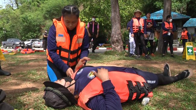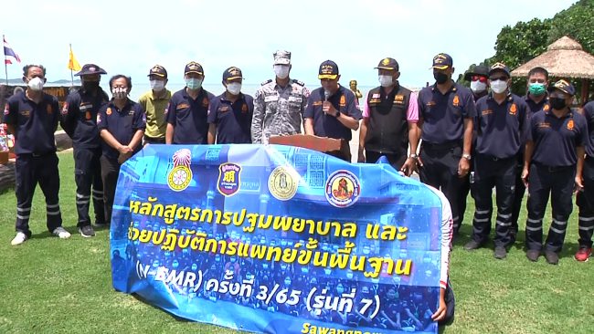 มูลนิธิสว่างพรกุศลระยอง ติวเข้มอาสาสมัครกู้ภัย หลักสูตรการปฐมพยาบาลและช่วยปฏิบัติการแพทย์ขั้นพื้นฐาน(N-EMR)การกู้ชีพและช่วยชีวิตทางน้ำ(MALS) ณ ท่าเรือเขาแหลมหญ้า