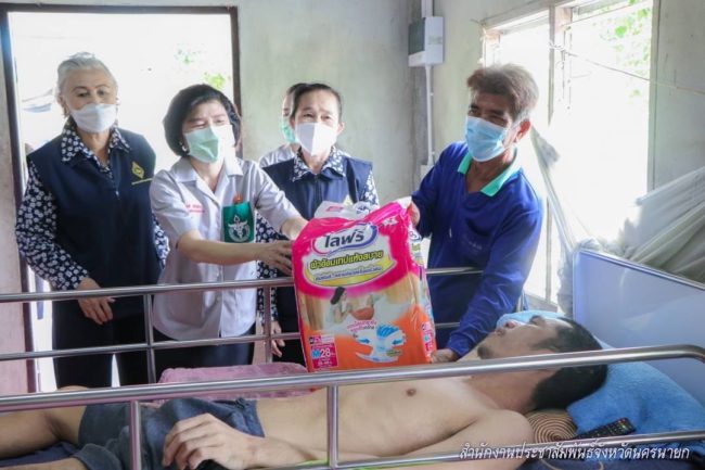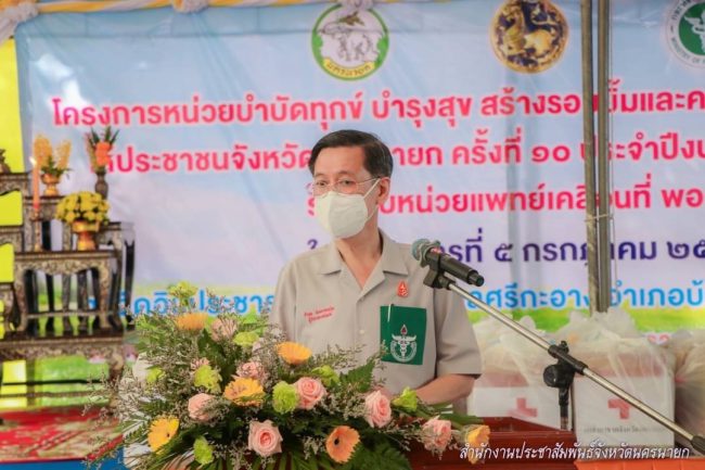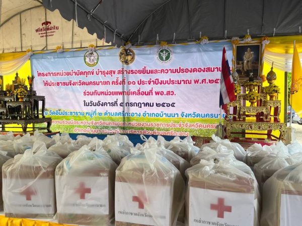 เนื่องในโอกาสวันคล้ายวันประสูติ ศาสตราจารย์ ดร.สมเด็จพระเจ้าน้องนางเธอ เจ้าฟ้าจุฬาภรณ์วลัยลักษณ์ อัครราชกุมารี กรมพระศรีสวางควัฒ วรขัตติยราชนารี ณ วัดอินประชาราม ต.ศรีกะอาง อ.บ้านนา จ.นครนายก โดยมีนายอำพล อังคภากรณ์กุล ผู้ว่าราชการจังหวัดนครนายก พร้อมนางสุวจี ศิริปัญโญนายกเหล่ากาชาดจังหวัดนครนายก และหัวหน้าส่วนราชการ ให้การต้อนรับ รองศาสตราจารย์ นายแพทย์องค์การ เรืองรัตนอัมพร รองเลขาธิการราชวิทยาลัยจุฬาภรณ์ ในการนำหน่วยแพทย์พระราชทานโรงพยาบาลจุฬาภรณ์ร่วมออกปฏิบัติงานหน่วยแพทย์เคลื่อนที่ พอ.สว.จังหวัดนครนายก และออกเยี่ยมผู้สูงอายุป่วยติดเตียงในพื้นที่ตำบลศรีกระอาง จำนวน 4 รายโดยได้มอบผ้าอ้อมสำเร็จรูป ถุงยังชีพบรรจุเครื่องอุปโภคบริโภค ร่วมกับรองเลขาธิการราชวิทยาลัย และคณะ เดินทางเยี่ยมผู้ป่วยติดเตียงในพื้นที่ พร้อมมอบสิ่งของยังชีพ เพื่อเป็นขวัญกำลังใจแก่ประชาชน 5 กรกฎาคม 2565