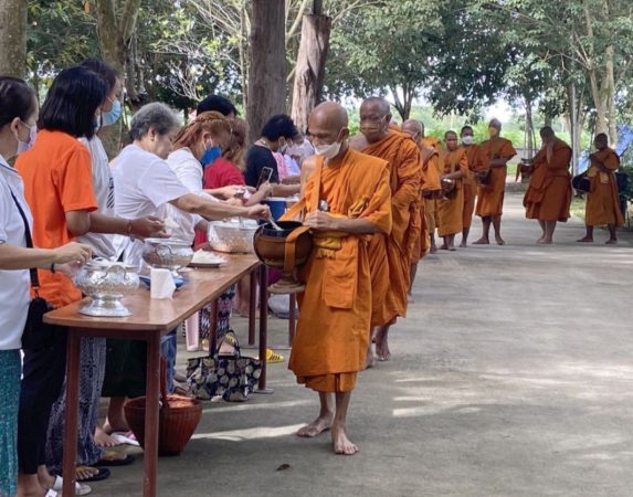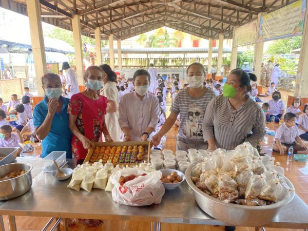 อาหารที่พระภิกษุสงฆ์ ฉันเสร็จแล้วจะนำไปเลี้ยงเด็กๆ ในแต่ละโรงเรียนที่อยู่ใกล้เคียง