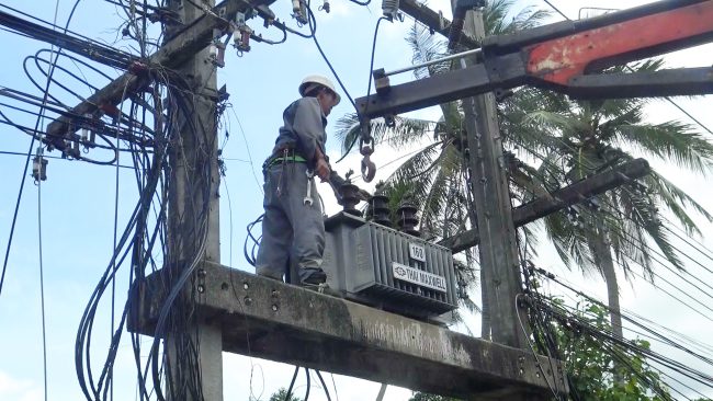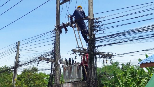 ชลบุรี # การไฟฟ้าส่วนภูมิภาคอำเภอศรีราชา ระดมเจ้าหน้าที่ปูพรมเปลี่ยนระบบสายไฟฟ้าและเพิ่มหม้อแปลงให้กลับหมู่บ้านห้วยกุ และหมู่บ้านโป่งดินดำ เพื่อแก้ไขปัญหาไฟตกไฟดับ หลังชาวบ้านได้รับผลกระทบไฟฟ้าดับบ่อยครั้ง