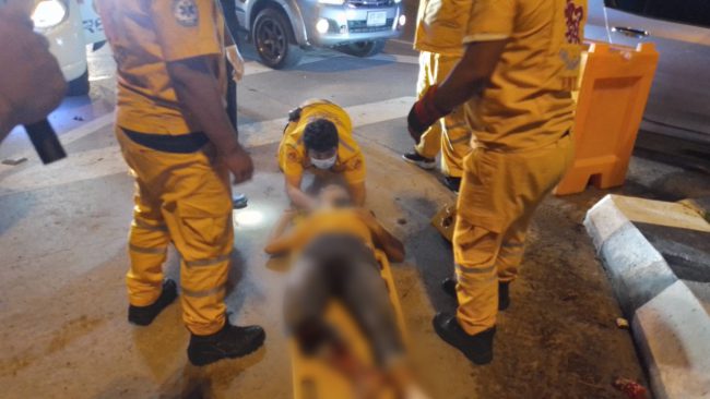 เมื่อเวลา01.00น.วันที่17ก.ค.2565 พ.ต.ต.ชาติคณินท์ อินทร์สอน สว.เวรสอบสวนสภ.หนองขามได้รับแจ้งจากศูนย์วิทยุบรรเทาสาธารณภัยและอุบัติภัยพุทธสมาคมเพียวเยี้ยงไท้ศรีราชาว่ามีรถชนราวปูนกั้นยูเทรินช่วงหน้านิคมปิ่นทอง2 บนถนนสายมาบเอียง-แหลมฉบัง หมู่9ต.หนองขามอ.ศรีราชาจ.ชลบุรีมีผู้บาดเจ็บ2รายและ1ใน2รายนั้นติดภายในอยู่ในรถกระบะยี่ห้อเชฟโรเลตสี่ประตูสีขาวหมายเลขทะเบียน 7กน-2835 กทม.ฝั่งผู้โดยสาร