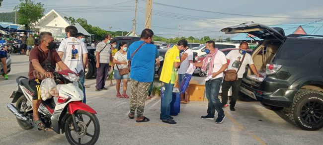 ว่าที่ผู้สมัคร ส.ส.พรรคเสรีรวมไทย อ.ศรีราชาออกแนะนำตัว และแจกเสื้อ,แมส,น้ำดื่มมาให้พี่น้องประชาชนที่ตลาดทางรถไฟบางพระ ต.บางพระ อ.ศรีราชา จ.ชลบุรี
