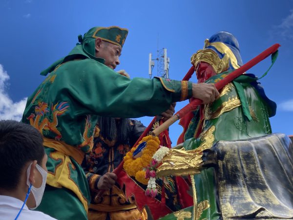 คุณกำไล วงศ์จู คณะกรรมการศาลเจ้าพ่อเตียวหุย และคุณอุดม บุญคำ เป็นประธาน ในพิธีเบิกเนตร องค์เทพเจ้ากวนอู ที่สร้างมาจากประเทศจีนโดยองค์เทพเจ้ากวนอูประทับทรงเบิกเนตร ในวันเทวะสมภพเทพเจ้ากวนอู