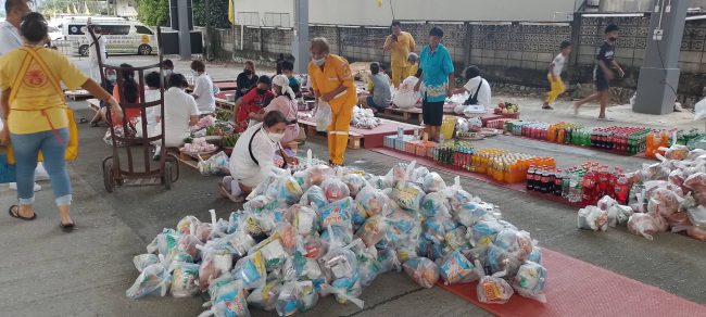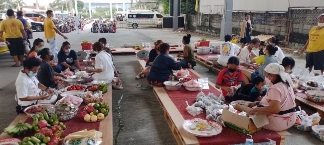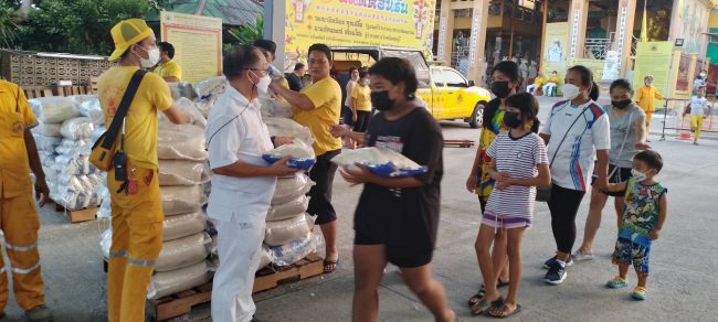 พุทธสมาคมเพียวเยี้ยงไท้ศรีราชาจัดงานทิ้งกระจาดประจำปี ประชาชนแห่รับแจกข้าวสารกันเนืองแน่น