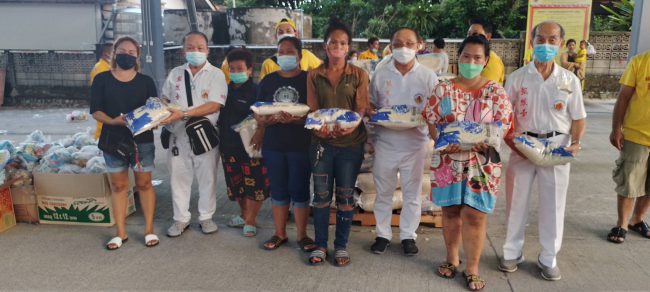 ซึ่งมีประชาชนในเขตเทศบาลเมืองศรีราชาและเทศบาลนครเจ้าพระยาสุรศักดิ์ ทั้งเด็กและคนโต คนชรากว่า600คนมารับแจกข้าวสารที่นำมาแจกกว่า700ถุง จากคณะกรรมการจัดงานในครั้งนี้อย่างเนืองแน่น โดยมีนายอำมาตย์ โสภณารามย์ นายกพุทธสมาคมสัจจะธรรมสงเคราะห์ โรงเจบึงไร่ 1 นายวิบูลย์ รักทองสุข อุปนายกพุทธสมาคมเพียวเยี้ยงไท้ศรีราชา มาร่วมงานและแจกข้าวสารร่วมกันกับคณะกรรมการพุทธสมาคมเพียวเยี้ยงไท้ศรีราชา ในครั้งนี้ด้วย