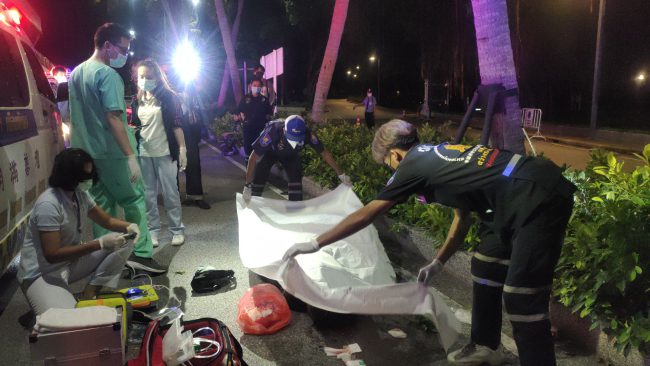 เมื่อเวลา 22.00 น.วันที่ 30 กรกฎาคม 2565 ร.ต.อ.พุทธรักษ์ สอนคำหาร รอง สว.สอบสวน สภ.เมืองพัทยา จ.ชลบุรี รับแจ้งมีอุบัติเหตุรถจักรยานยนต์ชนฟุตบาท เหตุเกิดบนถนนภายในโรงแรมรอยัล คลิฟ ม.12 ต.หนองปรือ อ.บางละมุง จ.ชลบุรี หลังรับแจ้งเตือนประสานเจ้าหน้าที่กู้ภัยมูลนิธิสว่างบริบูรณ์ธรรมสถานเมืองพัทยา พร้อมด้วยทีมแพทย์จากโรงพยาบาลเมืองพัทยาเร่งรัดเข้าตรวจสอบ