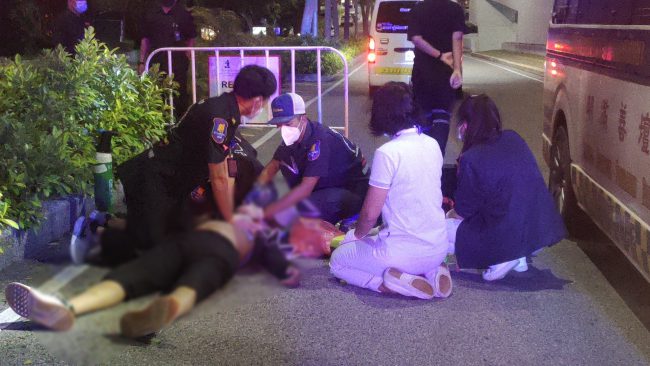 สอบถามพนักงานรักษาความปลอดภัยเล่าว่า ตอนนั้นตนยืนเปิดประตูอยู่บริเวณทางเข้าโรงแรม ได้ยินเสียงรถจักรยานยนต์ล้มดังสนั่น จึงรีบออกมาดูก็พบผู้บาดเจ็บนอนอยู่กลางถนนแล้วจึงรีบแจ้งเจ้าหน้าที่เข้าช่วยเหลือดังกล่าว