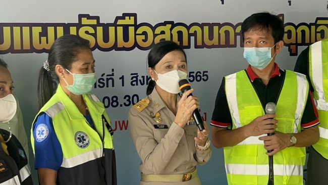 (วันที่ 1 สิงหาคม 2565 )ที่บริเวณที่ทำการชุมชนบ้านทุ่ง ตำบลทุ่งสุขลา อำเภอศรีราชา จังหวัดชลบุรี นางจินดา ถนอมรอด นายกเทศมนตรีนครแหลมฉบัง ได้เป็นประธานเปิดกิจกรรมฝึกซ้อมแผนรับมือสถานการณ์ฉุกเฉินชุมชนบ้านทุ่ง ตามแผนปฏิบัติการในการป้องกันและบรรเทาสาธารณภัยชุมชน พร้อมด้วยนายสันติ ศิริตันหยง รองนายกเทศมนตรีนครแหลมฉบัง ร่วมถึงนางทิพสุคนธ์ ดวงทิพย์ ผู้จัดการประชาสัมพันธ์ และบริหารสำนักงานโรงกลั่นน้ำมัน เอสโซ่ ศรีราชา, คณะกรรมการชุมชนบ้านทุ่ง เข้าร่วมกิจกรรมในครั้งนี้ โดยมีวัตถุประสงค์เพื่อเป็นการเตรียมความพร้อมรับมือ หากเกิดสถานการณ์ฉุกเฉินที่อาจจะเกิดขึ้น โรงกลั่นน้ำมัน เอสโซ่ ศรีราชา และหน่วยงานที่เกี่ยวข้องภายในพื้นที่เทศบาลนครแหลมฉบัง จึงมีความจำเป็นต้องจัดให้มีการฝึกซ้อมแผนฉุกเฉินในสถานการณ์ต่าง ๆ ร่วมกับหน่วยงานที่เกี่ยวข้อง เพื่อให้เกิดความพร้อมทั้งบุคลากร และเครื่องหมาย เครื่องมือ สามารถรองรับสถานการณ์อุบัติเหตุต่าง ๆ ที่อาจจะเกิดขึ้นได้