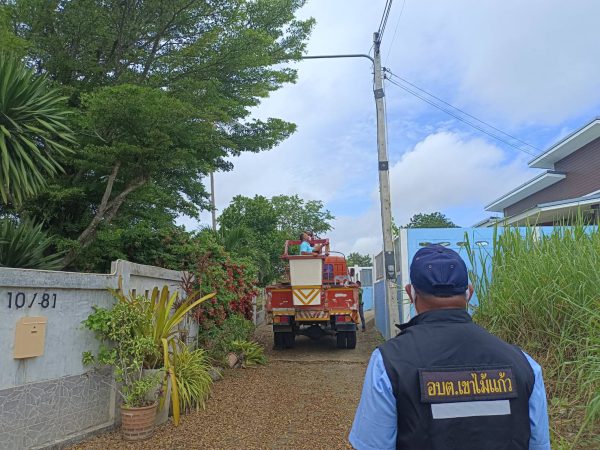 วันนี้( 3 สิงหาคม 2565) นายจำเนียร กีทีปกูล นายก อบต.เขาไม้แก้วมอบหมายให้นายบัญชา อุดง รองนายก อบต.เขาไม้แก้วลงพื้นที่ตรวจสอบความเรียบร้อยหลัง ได้สั่งการให้ จนท. อบต.เขาไม้แก้วลงพื้น ซ่อมแซมไฟฟ้าสาธารณะ ซอย ผอ.สนอง ซอยกำนันเขียว ม.1 ตามคำร้องเรียนร้องทุกข์ เนื่องจากช่วงนี้ฝนเริ่มมีพายุฝนฟ้าคะนองและลมกรรโชกแรงาทำให้โคมไฟชำรุดและเสียหายหลายจุด ซึ่งเกรงว่าจะเกิดอันตรายกับประชาชนที่สัญจรไปมายามค่ำคืน และบรรเทาความเดือดร้อนของประชาชนในพื้นที่