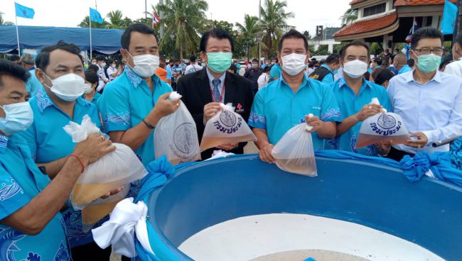 ประมงจังหวัดชลบุรี จัดโครงการปล่อยพันธุ์สัตว์น้ำ เนื่องในวันเฉลิมพระชนมพรรษาสมเด็จพระนางเจ้าสิริกิติ์ พระบรมราชินีนาถ พระบรมราชชนนีพันปีหลวง เนื่องในวันเฉลิมพระชนมพรรษา