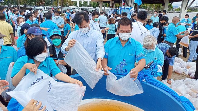 โดยมีนายนริศ ปาลกะวงศ์ ณ อยุธยา ปลัดอาวุโสอำเภอศรีราชา รักษาการแทนนายอำเภอศรีราชา และ นายณัฐพงค์ วรรณพัฒน์ ประมงจังหวัดชลบุรี กล่าวรายงาน โดยการจัดโครงการนี้ เพื่อถวายเป็นพระราชกุศลและเทิดพระเกียรติ