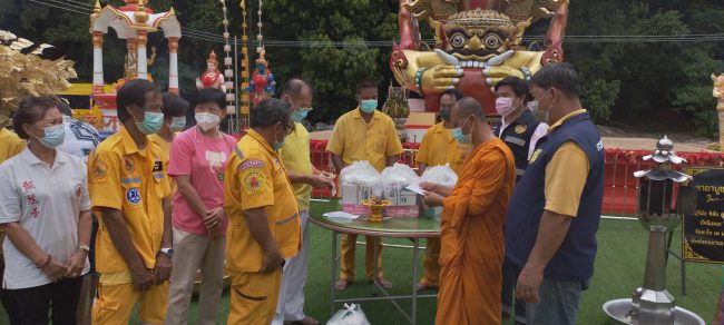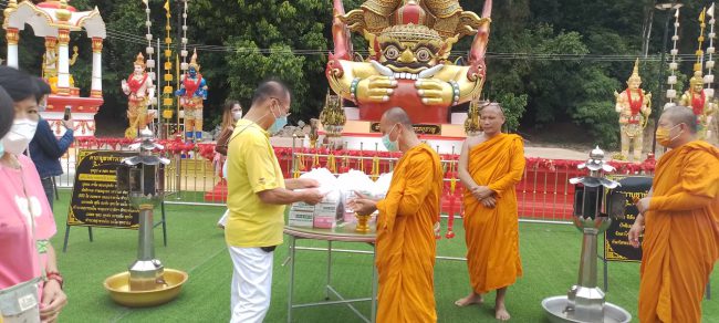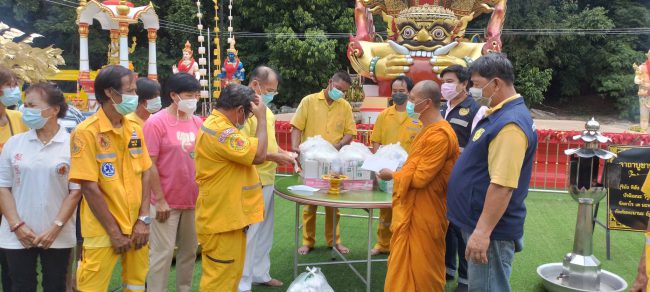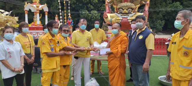 วัดเขาช่องลมมอบเงินและอุปกรณ์ปฐมพยาบาลให้กับหน่วยบรรเทาสาธารณภัยและอุบัติภัยพุทธสมาคมเพียวเยี้ยงไท้ ศรีราชา