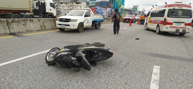 หนุ่มวัยเบญจเพสควบรถจักยานยนต์ ขึ้นต่างระดับท่าเรือแหลมฉบังถูกรถไม่ทราบชนิดเฉี่ยวชนทับร่างเสียชีวิต