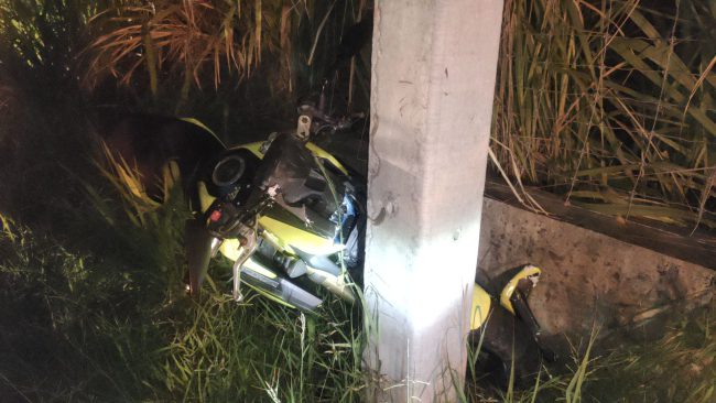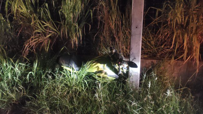 ชลบุรี-ถนนมืดจยย.มองไม่เห็น เสียหลักหลุดโค้งชนเสาไฟฟ้าสาหัส