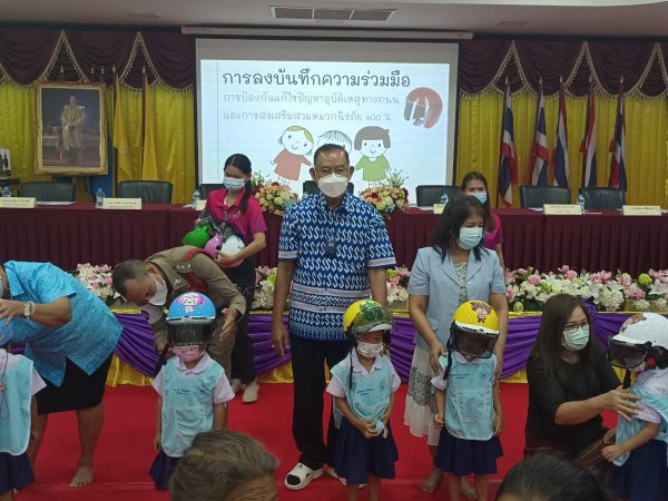 ชลบุรี-“นายกจำเนียร พร้อมคณะผูบริหาร ตัวแทนบริษัทอมตะ บีกริมพาวเวอร์ ระยอง ลงบันทึกความร่วมมือ (MOU) การป้องกันแก้ไขปัญหาอุบัติเหตุทางถนนและการส่งเสริมสวมหมวกนิรภัย 100% ศูนย์พัฒนาเด็กเล็กตำบลเขาไม้แก้วระหว่างผู้บริหารองค์การบริหารส่วนตำบลเขาไม้แก้วกับผู้ปกครองเด็กเล็กศูนย์พัฒนาเด็กเล็กตำบลเขาไม้แก้ว