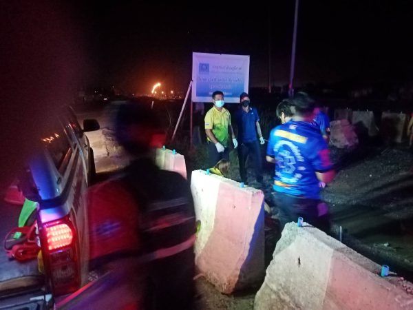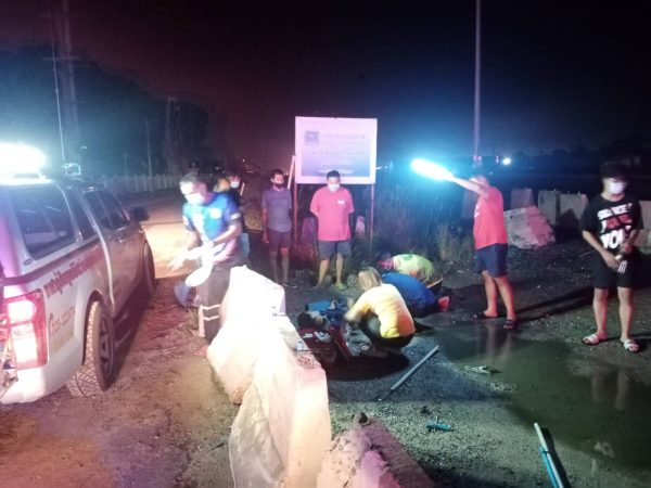 ที่เกิดเหตุพบรถจักรยานยนต์ ยี่ห้อhonda wave สีน้ำเงิน-ดำ ทะเบียน 1 กง 1606 อำนาจเจริญ เสียหลักพุ่งชนแท่งแบริเออร์ปูนจนรถเสียหลักล้มคว่ำพังเสียหาย ข้างกันยังพบนายอนุชิต อบอุ่น อายุ 22 ปี นอนได้รับบาดเจ็บอยู่ในคล้ายเมาสุรา เบื้องต้นทางเจ้าหน้ากู้ภัยศีลธรรม บ้านบึง รับช่วงต่อนำตัวผู้บาดเจ็บส่งโรงพยาบาลปิยะเวทบ่อวิน