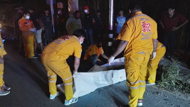 เมื่อเวลา21.45น.วันที่5ก.ย.2565ร.ต.อ.ราชัณ ไชยพิณ รองสว.เวรสภ.หนองขามได้รับแจ้งจากศูนย์วิทยุบรรเทาสาธาณภัยและอุบัติภัยพุทธสมาคมเพียวเยี้ยงไท้ศรีราชาว่ามีรถจยย.ชนฟุตบาทศีรษะโหม่งเสาไฟฟ้าส่องสว่างริมถนนคู่ขนานบึง-พัทยาช่วงเลยแยกโรงกุ้งมาพื้นที่หมู่2 ตำบลบึง อำเภอศรีราชาโดยคนขี่จยย.เสียชีวิตคาที่หลังรับแจ้งจึงเดินทางไปสถานที่เกิดเหตุพบ บิดา มารดาของผู้เสียชีวิตอยู่ในอาการเศร้าโศกมากอดศพผู้เสียชีวิตโดยทราบชื่อผู้เสียชีวิตชื่่่อนายศักดิ์รินทร์(ขอสงวนนามสกุล)อาย15ปีนักเรียนชั้นม.3โรงเรียนแห่งหนึ่งในพื้นที่ตำบลหนองขามโดยทราบว่าผู้เสียชีวิตออกจากบ้านมาขี่รถจยย.เล่นกับเพื่อนที่ริมถนนคู่ขนานเมื่อทางอาสาบรรเทาสาธาณภัยและอุบัติภัยพุทธสมาคมเพียวเยี้ยงไท้ศรีราชาเดินทางไป