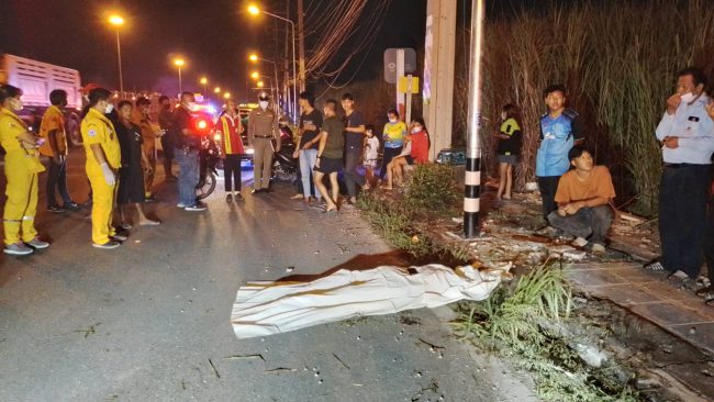 เด็กม.3ขี่รถเล่นกันด้วยความเร็วพุ่งชนฟุตบาทริมถนนศีรษะฟาดเสาไฟฟ้าส่องสว่างริมถนนเสียชีวิตคาที่