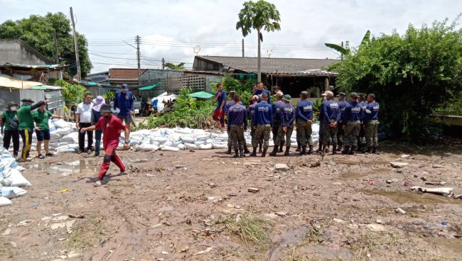 ในขณะเดียวที่หมู่บ้านรื่นรมย์ หมู่ 10 ต.สุรศักดิ์ อ.ศรีราชา จ.ชลบุรี ซึ่งเป็นพื้นที่ต่ำและติดกับคลองระบายน้ำ ปริมาณน้ำได้เอ่อล้นท่วมบ้านเรือนประชาชนซึ่งอยู่ในพื้นที่ต่ำ สูงเกือบ 50 – 60 เซนติเมตร โดยมีชาวบ้านที่พักอาศัยในหมู่บ้านเกือบร้อยหลัง ข้าวของเครื่องใช้ไฟฟ้าได้รับความเสียหาย