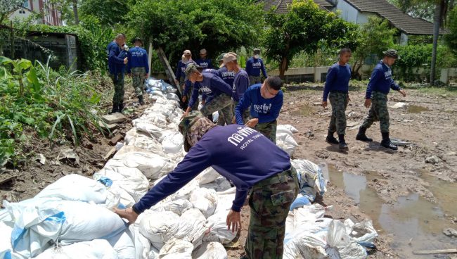 โดยสถานการณ์น้ำเริ่มกลับเข้าสู่ภาวะปกติแล้ว หลังระดับน้ำได้เริ่มลดลงอย่างต่อเนื่อง เหลือเพียงบางจุดที่ยังมีน้ำท่วมขังอยู่เท่านั้น โดยชาวบ้านในเขตเทศบาลนครเจ้าพระสุรศักดิ์ ต่างพากันทำความสะอาดบ้านเรือนของตน สาเหตุน้ำที่เข้าหมู่บ้านเนื่องจากกระสอบทรายที่กั้นไว้ก็พังจนทำให้น้ำไหลเข้าท่วมอย่างรวดเร็ว แต่ก็ยังคงเฝ้าระวังฝนที่อาจตกอีกครั้ง อย่างใกล้ชิด โดยการลงพื้นที่ครั้งนี้ไปส่งมอบกระสอบทรายจำนวน1,000 ถุงให้กับชาวบ้านที่ได้รับผลกระทบในครั้งนี้ พร้อมทั้งสอบถามความเดือดร้อนเพื่อที่ประสานหน่วยงานที่เกี่ยวข้องเข้าช่วยเหลือต่อไป