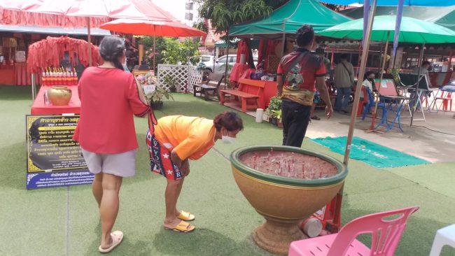 ก่อนถึงวันหวยออก นักเสี่ยงโชคทยอยกันมาไหว้ “ท้าวเวสสุวรรณมหาเศรษฐี” วัดเนินบุญญาราม(วัดต้นมะม่วง)หวังมีโชคถูกหวยกัน