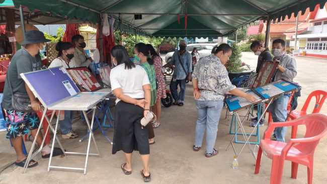 เมื่อเวลา12.00น.(15ก.ย.2565)ที่วัดเนินบุญญาราม(วัดต้นมะม่วง)ตำบลทุ่งสุขลา อำเภอศรีราชา จังหวัดชลบุรี ได้มี ประชาชนจากหลายพื้นที่ ทยอยกันมาทำบุญไหว้พระ รวมถึงไหว้ขอพร”ท้าวเวสสุวรรณมหาเศรษฐี”ซึ่งประชาชนได้เดินทางมากราบไหว้บูชา ขอพร ขอโชคลาภ กับองค์ท้าวเวสสุวรรณมหาเศรษฐี กันตลอดตั้งแต่ช่วงเช้าเป็นต้นมา เนื่องจากใกล้ถึงวันหวยออก โดยแต่ละคนต่างมานั่งจ้องมองเลขธูปที่นำมาจุดถวายท้าวเวสสุวรรณ เมื่อเห็นเลขปรากฏในธูปก็จะพากันไปซื้อสลากกินแบ่งรัฐบาลกันที่แผงจำหน่ายสลากกินแบ่งในวัด หวังว่าจะมีโชคถูกรางวัลใหญ่