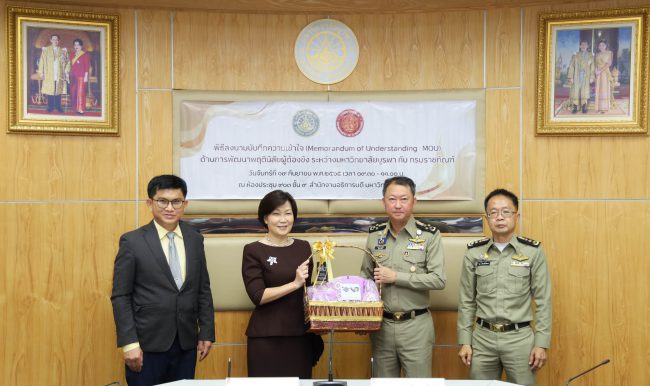 เมื่อวันที่ 19 กันยายน ที่ห้องประชุม 903 ชั้น 3 สำนักงานอธิการบดี (อาคาร ภปร) มหาวิทยาลัยบูรพา ต.แสนสุข อ.เมือง จ.ชลบุรี มหาวิทยาลัยบูรพา โดยคณะบริหารธุรกิจ จัดพิธีลงนามบันทึกความเข้าใจ (MOU) ด้านการพัฒนาพฤตินิสัยผู้ต้องขัง ระหว่างมหาวิทยาลัยบูรพากับกรมราชทัณฑ์ โดยมี รองศาสตราจารย์ ดร.วัชรินทร์ กาสลัก อธิการบดีมหาวิทยาลัยบูรพา เป็นประธานลงนามฝ่ายมหาวิทยาลัยบูรพา นายอายุตม์ สินธพพันธุ์ อธิบดีกรมราชทัณฑ์ เป็นประธานลงนามฝ่ายกรมราชทัณฑ์ พร้อมด้วยผู้ช่วยศาสตราจารย์ ดร.พรรณี พิมาพันธุ์ศรี คณบดีคณะบริหารธุรกิจ มหาวิทยาลัยบูรพา และผู้บริหาร หัวหน้าส่วนงาน มหาวิทยาลัยบูรพา และผู้บริหารกรมราชทัณฑ์ ให้เกียรติเข้าร่วม ในพิธีลงนามครั้งนี้