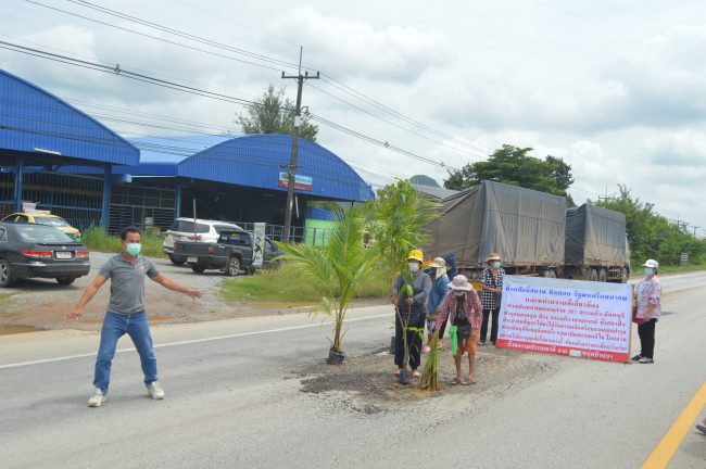 ชาวบ้านเขาฉกรรจ์เสี่ยงตายปลูกต้นไม้บนถนนที่พังเป็นหลุมเป็นบ่อประท้วงหน่วยงานที่รับผิดชอบ ขนาดอดีตผู้ว่าฯสระแก้ว สั่งแก้ไข ยังไม่มีอะไรดีขึ้น