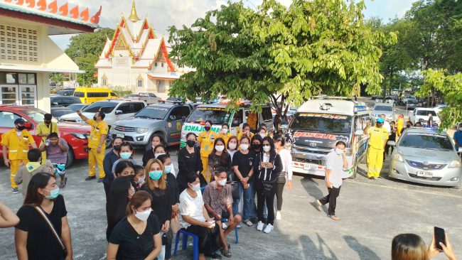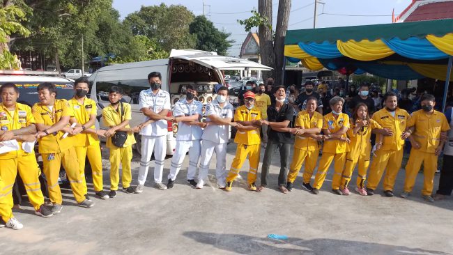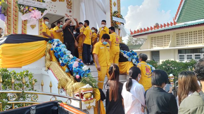 เผาหนุ่มกู้ภัยจิตอาสา ที่จากไปอย่างไม่ได้ร่ำลาใคร รถอาสากู้ภัยบรรเทาสาธารณภัยและอุบัติภัยฯกว่า 30 คัน อาสา 60 คน พร้อมใจ ร้องเพลง เปิดเสียงไซเรน และไฟสัญญาณฉุกเฉิน เพื่อส่งดวงวิญญาณ”น้าปุ้ย ด่านสาม” ไปสู่สุขคติ