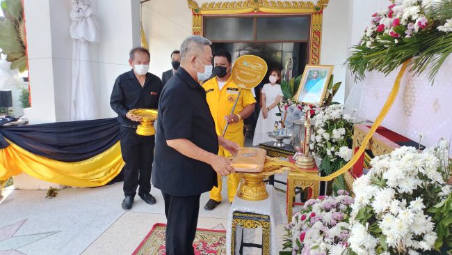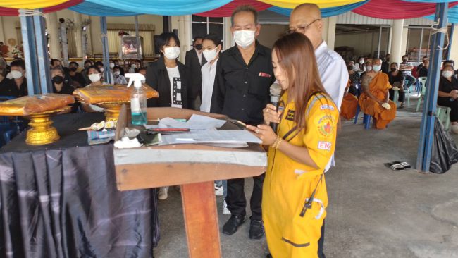 เมื่อเวลา15.45น.( 22ก.ย.2565) ที่เมรุวัดหนองปรือ ตำบลบึง อำเภอศรีราชา จังหวัดชลบุรี นายธนะพัฒน์ (นายกฮุ้น) พันเฉลิมชัยโชค นายกเทศมนตรีนครเจ้าพระยาสุรศักดิ์ ได้เดินทางมาเป็นประธานในพิธีฌาปนกิจศพ นายอังคาร นารี หรือน้าปุ้ย ด่านสาม อายุ 34ปี อาสาสมัครกู้ภัยบรรเทาสาธารณภัยและอุบัติภัยพุทธสมาคมเพียวเยี้ยงไท้ศรีราชา นามเรียกขานห้วยสะพาน18 ที่เสียชีวิตจากเหตุการณ์วูบล้มฟาดพื้นหัวใจวายเฉียบพลัน เมื่อวันเสาร์ที่17กันยายนที่ผ่านมา และเสียชีวิตลงที่บ้าน ซึ่ง”น้าปุ้ย” เป็นอาสากู้ภัยนิสัยดี มีความเสียสละ เป็นจิตอาสาช่วยเหลือสังคมโดยไม่เห็นแก่ความเหนื่อยยากเป็นที่ตั้ง จิตใจโอบอ้อมอารีต่อเพื่อนมนุษย์ สละเวลาว่างให้เป็นประโยชน์ต่อสังคมตลอดมายาวนานกว่า15 ปีที่เป็นอาสากู้ภัย