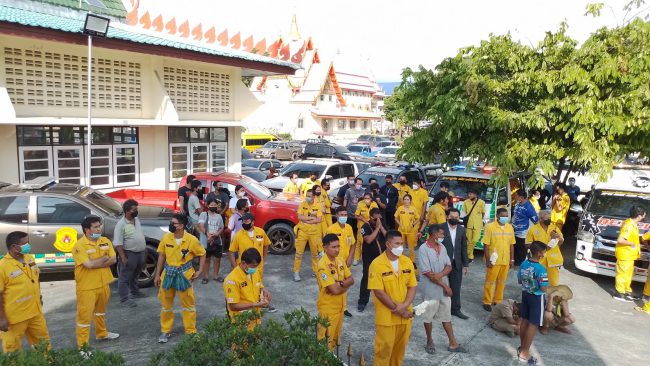 โดยต่างร้องเพลงกันทั้งน้ำตาเนื่องจากทุกคนทำใจไม่ได้ ต่อจากนั้น รถอาสากู้ภัยที่จอดอยู่ภายในบริเวณวัด จำนวนกว่า 30 คัน ได้พร้อมใจกันเปิดไฟสัญญาณฉุกเฉิน และเปิดเสียงไซเรนดังเป็นเวลา 9 นาที เพื่อส่งดวงวิญญาณ”นายอังคาร นารี หรือน้าปุ้ย ด่านสาม” ไปสู่สัมปรายภพ เพราะเพื่อนอาสากู้ภัยฯ ที่จากไปจากโลกนี้ เขารักในงานกู้ภัยและ รักในความเสียสละที่จะช่วยเหลือผู้คนในสังคมด้วยความเป็นจิตอาสามากว่า 15 ปีแล้ว โดยที่จากไปอย่างสงบโดยที่ยังไม่ได้ทันร่ำลาพี่น้องอาสากู้ภัย และญาติพี่น้องเลยสักคน จึงร่วมกันไว้อาลัยให้เป็นครั้งสุดท้ายเพื่อส่งดวงวิญญาน ให้ไปสู่สุขคติ ซึ่งทั้งงานเต็มไปด้วยน้ำตาของญาติพี่น้อง และอาสากู้ภัยที่รักและเคารพในตัวของผู้เสียชีวิต
