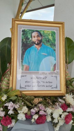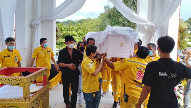 จึงเป็นที่รักใคร่ของน้องๆอาสากู้ภัยทุกคนที่รู้จัก โดยในพิธีฌาปนกิจศพเมื่อนำศพเวียนรอบเมรุ แตรวงได้เล่นเพลงสามช่า ให้อาสากู้ภัยได้เต้นนำหน้าศพ กัน เนื่องจากผู้เสียชีวิตชอบความสนุกสนาน น่าเริง ชอบเสียงเพลง ซึ่งได้มี ญาติ เพื่อนอาสาสมัครกู้ภัยบรรเทาสาธารณภัยและอุบัติภัยพุทธสมาคมเพียวเยี้ยงไท้ศรีราชา นายสงกรานต์ ภาชนะ สมาชิกองค์การบริหารส่วนจังหวัดชลบุรี เขตอำเภอศรีราชา นายสมชาติ ชาติกิตสาร ประธานหน่วยบรรเทาสาธารณภัยและอุบัติภัยพุทธสมาคมเพียวเยี้ยงไท้ศรีราชา สมาชิกสภาเทศบาลนครเจ้าพระยาสุศักดิ์ ผู้นำท้องถิ่น และประชาชนชาวบ้านหนองปรือ ตำบลบึง อำเภอศรีราชามาร่วมในพิธีอย่างคับคั่งกว่า 300 คน และทางเพื่อนๆอาสาสม้ครกู้ภัยได้ร่วมกันร้องเพลง พันธุ์เดียวกัน และเพลงเราและนาย