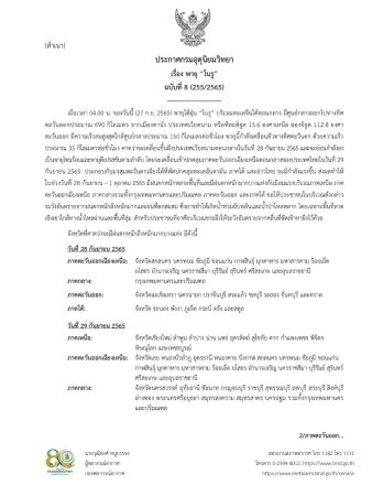 ชลบุรี # พายุ “โนรู ” มีความรุนแรงมาก เข้าสู่ประเทศไทยช่วงเช้าวันที่ 29 กันยายน 2565 ชลประทานจังหวัดชลบุรี เตือนประชาชนระวังอันตราย