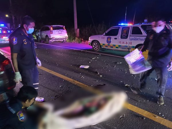 ที่เกิดเหตุพบรถยนต์ยี่ห้อ ฮอนด้า ซีอาร์วี 1 ขศ 5044 กรุงเทพมหานคร ได้รับความเสียหายที่ด้านหน้า มีนายชัยพร แซ่ว่าง อายุ 34 ปี เป็นคนขับ ชนประสานงากับรถจักรยานยนต์ยี่ห้อฮอนด้า โซนิค สีน้ำเงินดำ หมายเลขทะเบียน คตห 798 อุบลราชธานี มีนายรังสรรค์ ชาดง อายุ 35 ปี เป็นผู้ขับขี่ เสียชีวิตคาที่เกิดเหตุ ตัวรถได้รับความเสียหายยับเยิน กระเด็นตกลงไปอยู่ข้างทาง