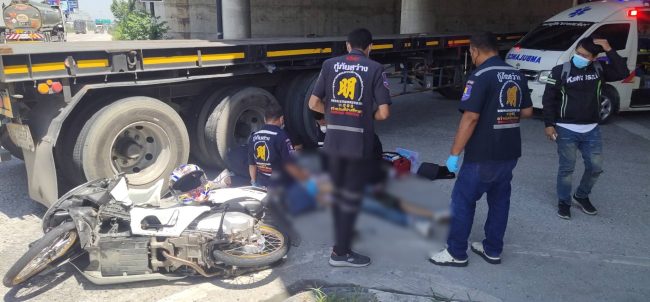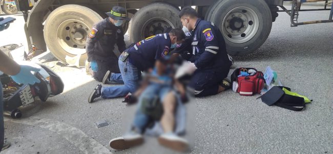 หนุ่มเบญจเพศขับรถชนท้ายรถ 18 ล้อบาดเจ็บสาหัส