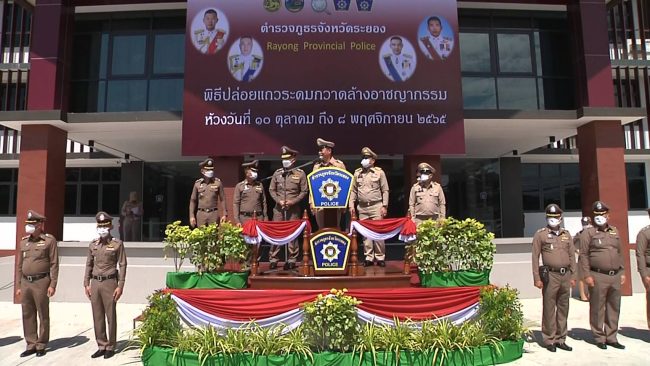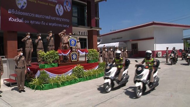 ผู้ว่าราชการจังหวัดระยอง ปล่อยแถวเจ้าหน้าที่ตำรวจ ฝ่ายปกครอง กวาดล้างอาชญากรรม เน้น พ.ร.บ.ยาเสพติด และ อาวุธปืน