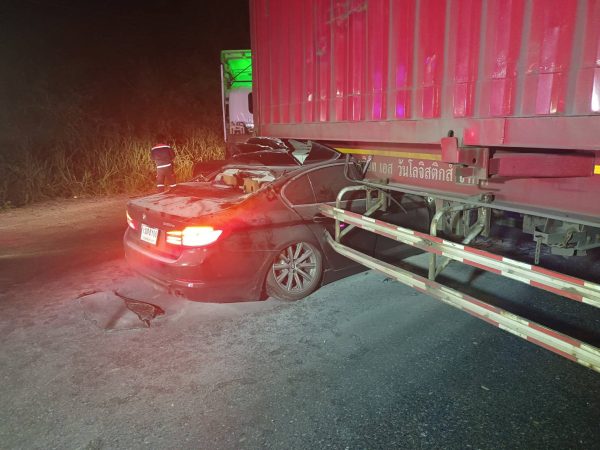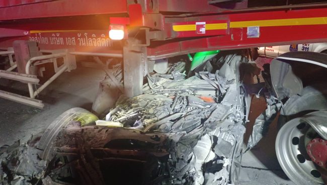 ชลบุรี-พ่วง 18 ล้อยูเทิร์นบีเอ็มเจ้าของหมู่บ้านทางตรงชนกลางลำ ดับคาซากคาดสาเหตุถนนไร้แสงไฟ