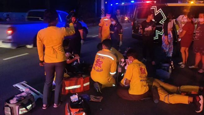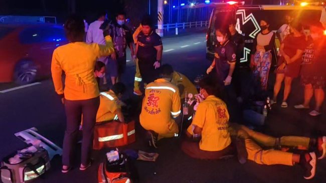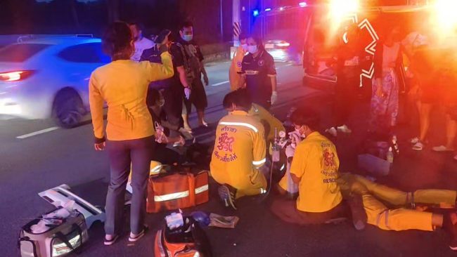 เมื่อเวลา 19.00 น. วันที่ 20 ตุลาคม 2565 เจ้าหน้าที่ตำรวจ สภ.หนองขาม อ.ศรีราชา จ.ชลบุรี ได้รับแจ้งว่าเกิดเหตุรถบรรทุก 6 ล้อ พุ่งชนคนข้ามถนน ส่งผลให้ได้รับบาดเจ็บสาหัส เหตุเกิดบริเวณถนนหน้าสนามกอล์ฟ แหลมฉบัง อินเตอร์เนชั่นแนล คันทรีคลับ ม.4 ต.บึง อ.ศรีราชา จ.ชลบุรี จึงรีบรุดไปตรวจสอบ พร้อมด้วยเจ้าหน้าที่หน่วยกู้ภัยเพียวเยี้ยงไท้ ศรีราชา