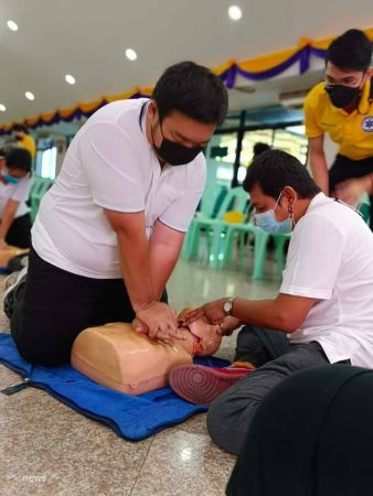 หรือ หยุดหายใจกะทันหันได้อย่างทันท่วงที ซึ่งเป็นภาวะที่สามารถเกิดขึ้นได้ตลอดเวลา ทำให้สามารถช่วยลดการสูญเสียชีวิตได้ โดยผู้เข้าอบรมในครั้งนี้ 90 คน ทั้งนี้เพื่อเป็นการส่งเสริมให้ประชาชนมี “จิตอาสา” พร้อมเป็นผู้เสียสละให้การช่วยเหลือ ปฏิบัติอย่างถูกต้องตามหลักวิชาการ ลดการบาดเจ็บและการสูญเสียชีวิต โดยเฉพาะการเสียชีวิตเกิดขึ้นได้ในทุกเวลา ทุกสถานที่ ถ้าหาก ณ จุดเกิดเหตุมีประชาชนสามารถให้การช่วยเหลือด้วยการทำ CPR และมีการใช้เครื่อง AED ก็จะสามารถช่วยชีวิตประสบเหตุดังกล่าวให้ปลอดภัยได้ ให้ประชาชนสามารถเข้าถึงบริการการแพทย์ฉุกเฉินที่มีคุณภาพและมีมาตรฐานสากล อย่างครอบคลุมและทั่วถึง