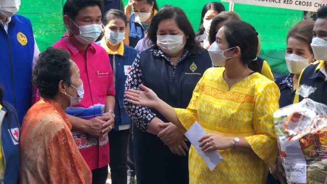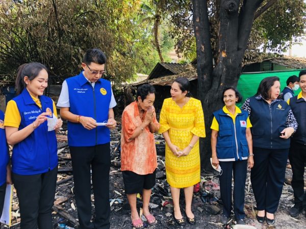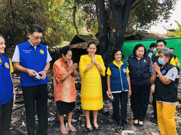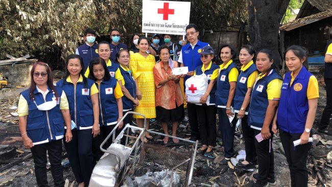 นายเหล่ากาชาดจังหวัดชลบุรีรุดเยี่ยมมอบถุงยังชีพให้ผู้ประสบเหตุบ้านไฟไหม้