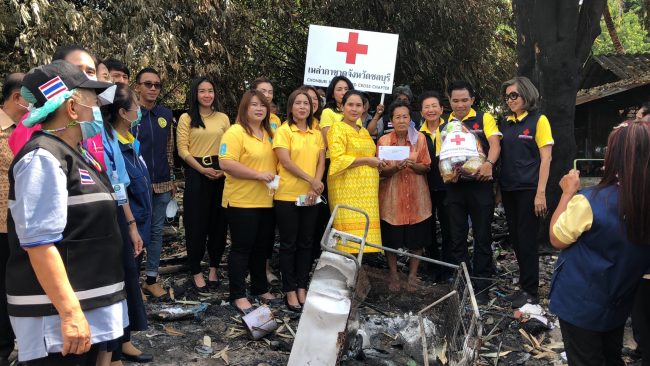 โดย นางสาวประภัสรา ศรีทอง นายกเหล่ากาชาดจังหวัดชลบุรี เปิดเผยว่า ในวันนี้ในนามนากเหล่ากาชาดจังหวัดชลบุรี พร้อมด้วยกาชาดจังหวัดชลบุรี กิ่งกาชาดอำเภอศรีราชา ได้นำเงิน ถุงยังชีพ มามอบให้ผู้ประสบเหตุใน พร้อมทั้งสอบถามความเป็นหลังจากเกิดเหตุการณ์ไฟไหม้ ซึ่งก็ได้ให้การช่วยเหลือในเบื้องต้นไปแล้ว