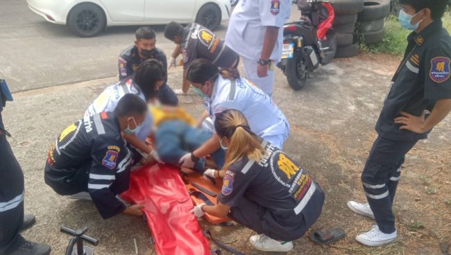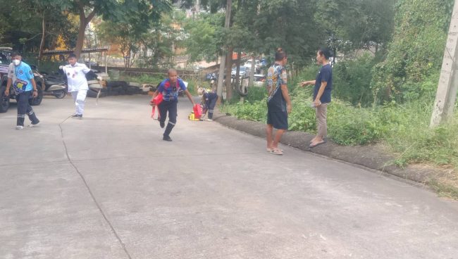 ในที่เกิดเหตุบริเวณทางขึ้นเขาพระครู พบรถจักรยานยนต์ honda click 125 สีขาวหมายเลขทะเบียน 1 กต 9789 ชลบุรี ล้มคว่ำอยู่ในพงหญ้าตีนเขาที่มีความสูง กว่า 5 เมตร