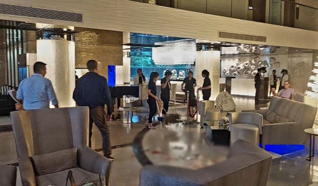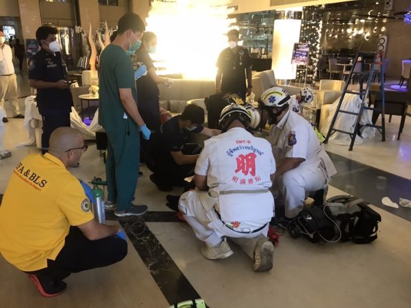 ที่เกิดเหตุเป็นโรงแรมหรู สูง 8 ชั้น ตรวจสอบที่บริเวณโซฟาจุดนั่งรอเช็คอินของลูกค้า ชั้นล่าง ซึ่งอยู่ติดกับฟร้อนท์กลางโรงแรม พบร่าง นายดิมิทรี่ ค็อกคราคอฟ (MR.DMITRII KHOKHRAKOV) อายุ 33 ปี นักท่องเที่ยวชาวรัสเซีย พลัดตกจากชั้นที่ 8 นอนจมกองเลือด สภาพกระดูกขาทั้งสองข้าง กระดูกตามลำตัวแตกหักหลายแห่ง จนท.จึงปั้มหัวใจเพื่อยื้อชีวิต ก่อนเคลื่อนย้ายส่ง รพ.เมืองพัทยา แต่ทนพิษบาดแผลไม่ไหวเสียชีวิตในเวลาต่อมา