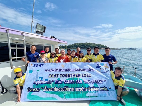 การไฟฟ้าฝ่ายผลิตแห่งประเทศไทย (กฟผ.) จัดโครงการ EGAT TOGETHER โดยกลุ่มนักดำน้ำจิตอาสา กฟผ. ร่วมกับเครือข่ายพันธมิตร กรมทรัพยากรทางทะเลและชายฝั่ง (ทช.) กองทัพเรือ และภาคเอกชน จัดกิจกรรมดำน้ำเก็บขยะ ตัดอวน ชวนอนุรักษ์ทะเลไทย บริเวณพื้นที่โครงการวางบ้านปลาปะการังเทียมจากลูกถ้วยฉนวนไฟฟ้าของ กฟผ. จังหวัดชลบุรีและจังหวัดภูเก็ต เพื่อช่วยฟื้นฟูระบบนิเวศทางทะเลของประเทศไทย และสร้างความตระหนักรู้ด้านการอนุรักษ์ท้องทะเลไทยอย่างยั่งยืน ให้แก่เยาวชน นักท่องเที่ยว และประชาชนทั่วไป โดยมีนายไพทูล แพนชัยภูมิ ผู้อำนวยการส่วนอนุรักษ์และฟื้นฟูทรัพยากรทางทะเล ทช. นักดำน้ำจิตอาสา กฟผ. กลุ่ม “SEA SPARK” กลุ่ม Save The Planet Associate (SPA) นักประดาน้ำจากกรมสรรพาวุธทหารเรือ กองทัพเรือ ชมรมผู้ประกอบการท่องเที่ยวดำน้ำแบบเดินใต้ทะเล (Sea walker) และบริษัท เอวันพัทยา จำกัด ร่วมสนับสนุนกิจกรรมครั้งนี้ เมื่อวันที่ 22 พฤศจิกายน 2565 ณ เกาะล้าน เกาะสาก อำเภอบางละมุง จังหวัดชลบุรี และเมื่อวันที่ 19 พฤศจิกายน 2565 ณ หาดป่าตอง อำเภอกระทู้ จังหวัดภูเก็ต